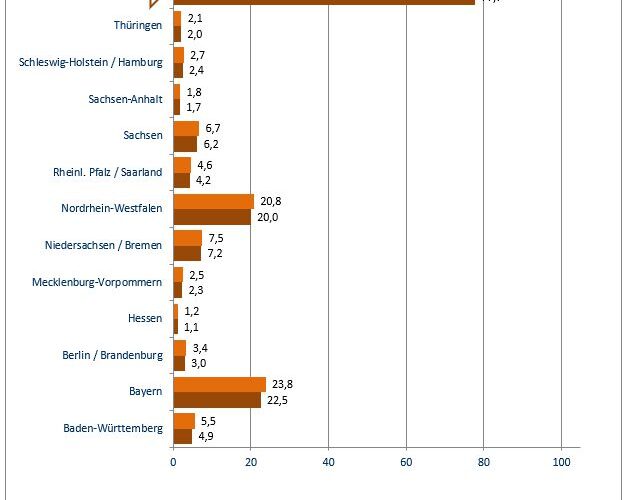 Gesamtbierabsatz nach Bundesländern 2024 zu 2025