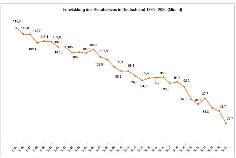 Entwicklung des Bierabsatzes in Deutschland 1995 – 2025